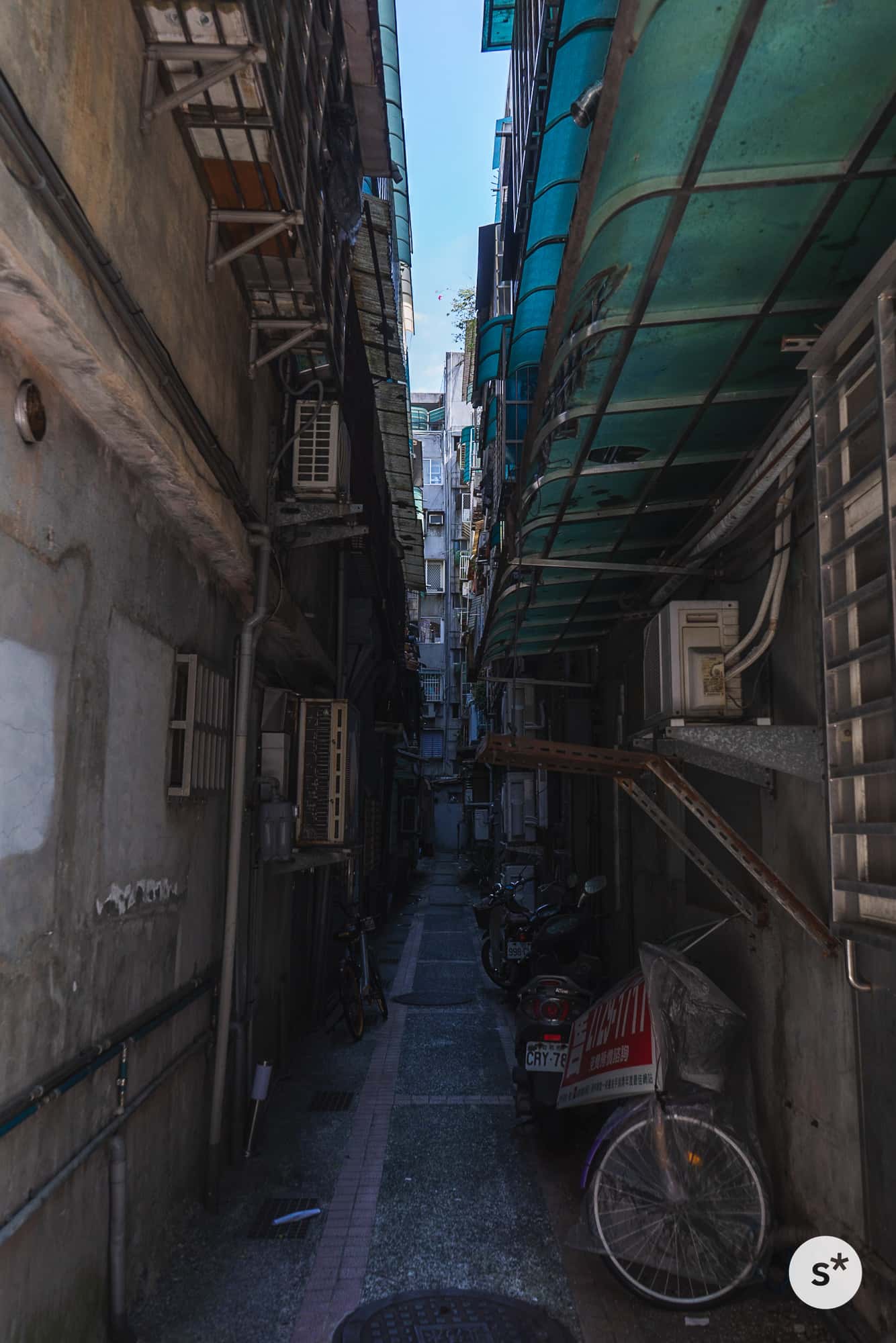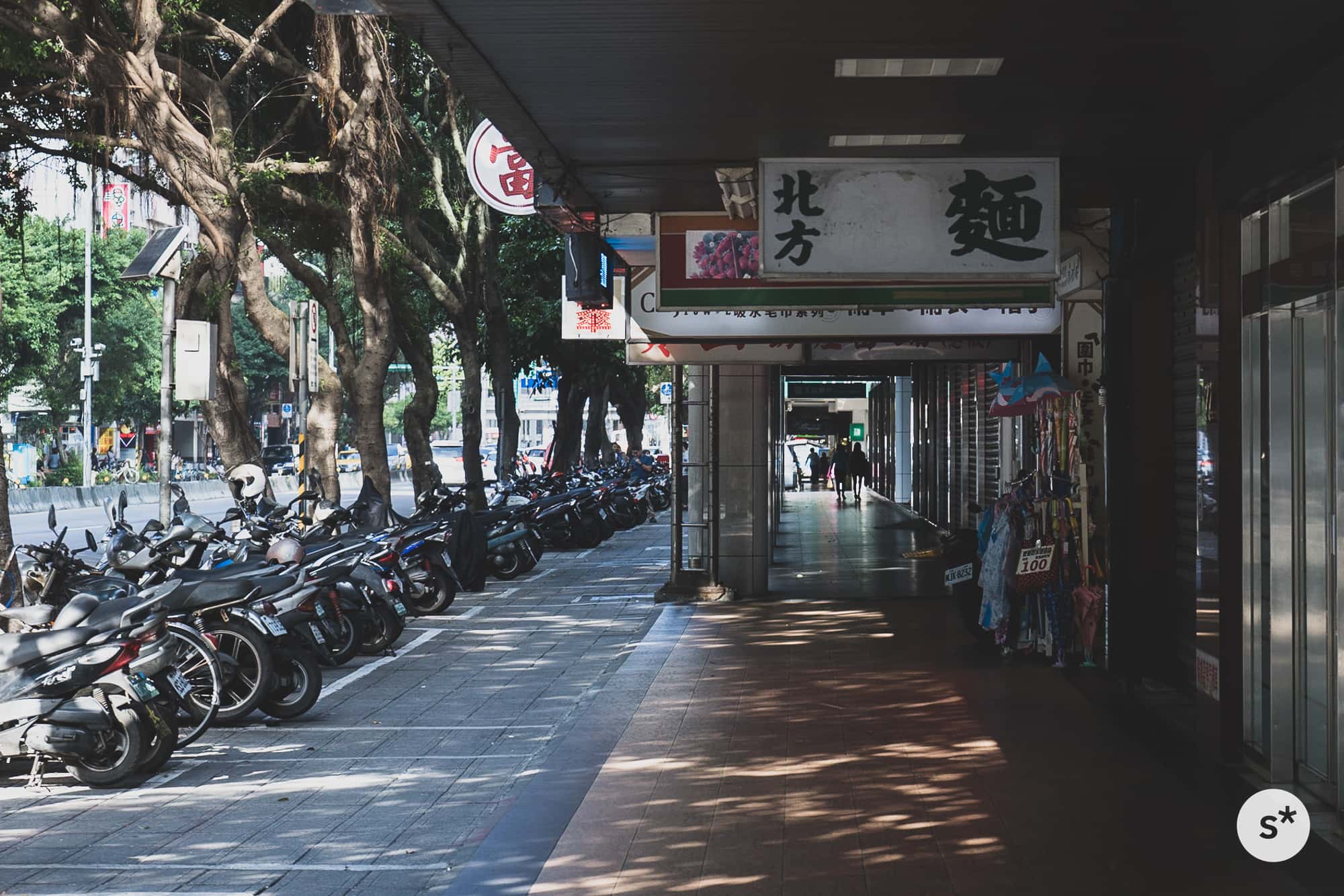 台湾の建物は少し特殊で、1階部分が奥まっている。ほとんどの建物がこんな構造なので、雨の日も傘を差さずに歩くことができる。