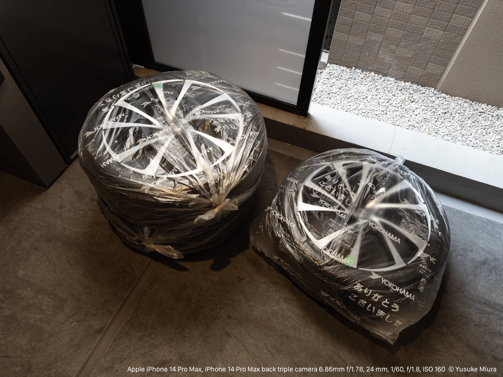 履き替えて自宅に戻ってくると、だいたい15時とか16時を回っています。車に乗せて持って帰ってきたタイヤを今度は1本ずつ自宅まで運び、ベランダに積み上げる作業が待っているので、日が暮れる前にやってしまいます。