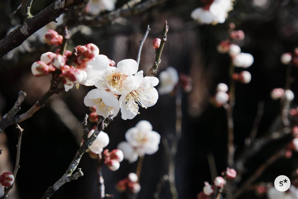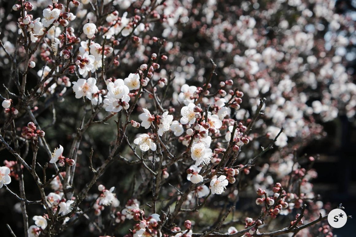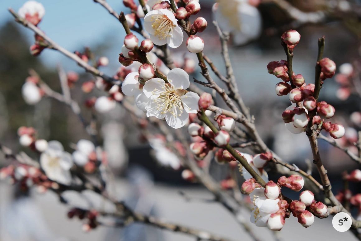 まずは、2月に成田山を訪れたときの写真から。まだ寒い日が続いていましたが、立春を過ぎ、ちょうど梅の花が咲き始めたタイミングでした。この日はすべてクラシッククロームでの撮影です。