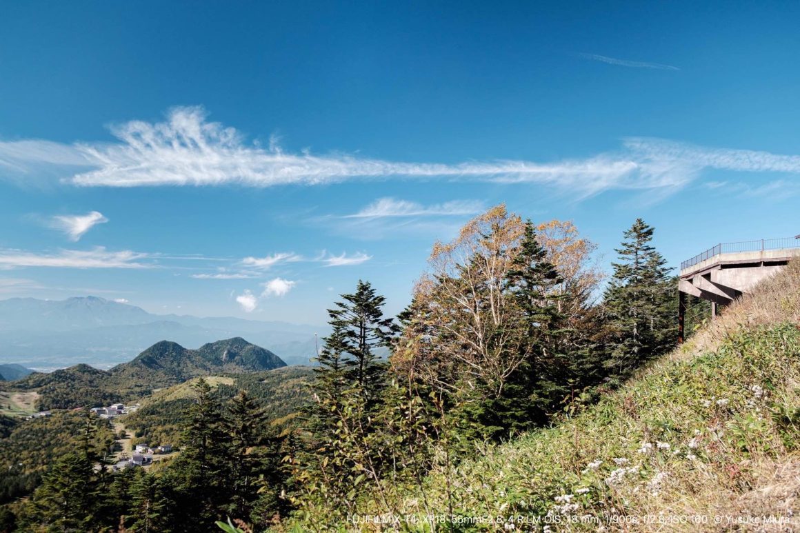 長野市内から山道へ。途中で車を止めてカメラを構え、一沼の静かな水面や、傾く陽に照らされた紅葉を切り取る。標高2,300mの横手山からは北アルプスまで見渡せて、秋の光が山々を柔らかく包み込んでいました。